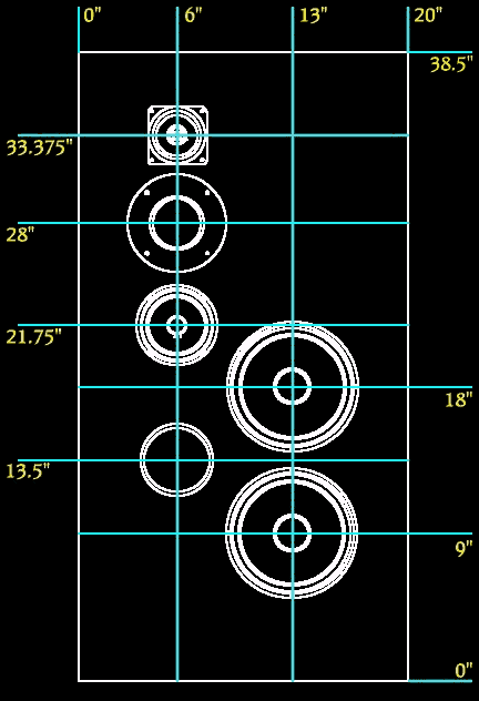 This is an isobaric woofer chamber spacer. Four of these are cut, for each cabinet, out of 3/4" thick board, and stacked behind a similar hole pattern in each baffle.