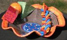 surrounded by a spiral of polyethylene. The bowl is made of a flat disk of clay