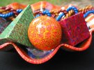 fibers and textiles and the geometric solids represent molded plastic objects.