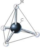In real three dimensional space, these four bonds are arranged as the points of a