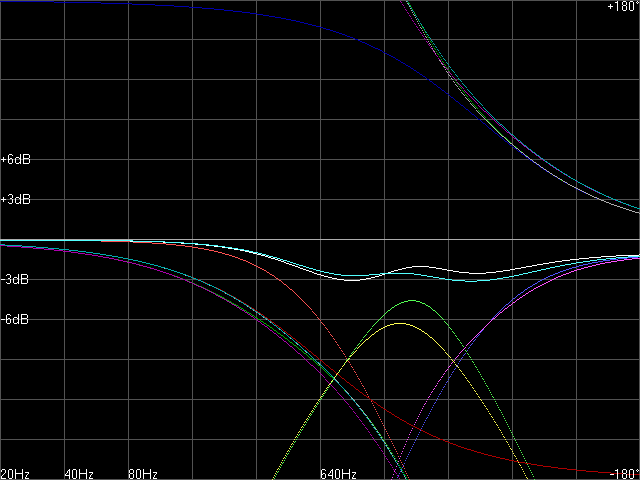 of the crossover, loaded with real drivers from 20Hz to 20KHz log scale.